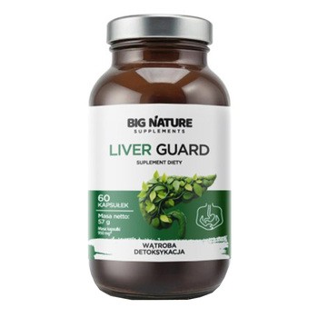 Big Nature Liver Guard - to suplement diety w postaci kapsułek, który zawiera ekstrakty z ostropestu plamistego, liści karczocha, a także witaminę C, N-acetylocysteinę i L-taurynę. Produkt przeznaczony dla osób dorosłych.