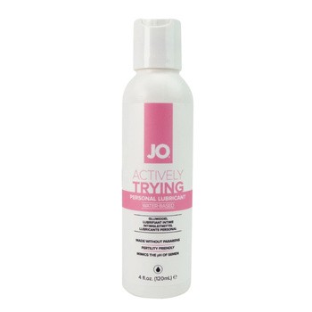 Lubrykant System JO Actively Trying posiada przyjazną formułę, która nie szkodzi żywotności ani ruchliwości nasienia. Naśladuje naturalne nawilżenie. Posiada certyfikat ISO, co świadczy o bezpieczeństwie produktu dla par starających się o dziecko. Jest na bazie wody, łatwo zmywalny.