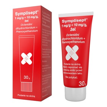 Symplisept to lek w postaci żelu, który zawiera dwie substancje czynne: oktenidyny dichlorowodorek o działaniu antyseptycznym i dezynfekującym oraz fenoksyetanol o działaniu bakteriobójczym. Preparat przeznaczony jest do stosowania na skórę.