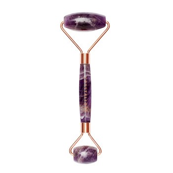 Masażer do twarzy z ametystu Crystallove wykonany jest z autentycznego ametystu, który posiada właściwości relaksujące. Jest to kamień sprzyjający harmonii i wyciszeniu. Redukuje opuchliznę oraz cienie pod wokół oczu. Masaż stymuluje krążenie, a także poprawiając elastyczność skóry. Posiada 2 końcówki: większa do masażu twarzy, szyi i dekoltu, mniejsza do precyzyjnego masażu okolic oczu. Wymiary: 16 x 5,5, cm. Okucie masażera pokryte jest miedzią w kolorze różowego złota.