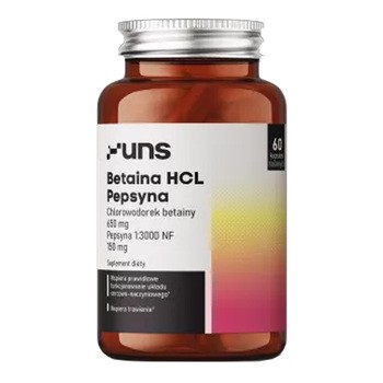 Uns Betaina HCL Pepsyna - to suplement diety w formie kapsułek, który w swoim składzie zawiera chlorowodorek betainy. Produkt przeznaczony dla dorosłych.