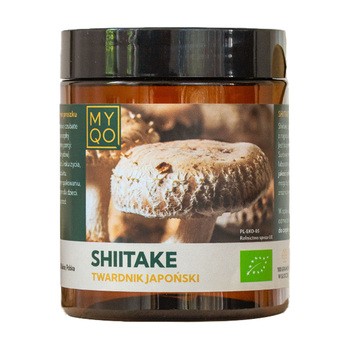 MYQO BIO Shiitake Twardnik japoński - to suplement diety w postaci proszku, który zawiera organiczny ekstrakt z owocników grzyba Lentinula edodes. Produkt przeznaczony dla osób dorosłych.