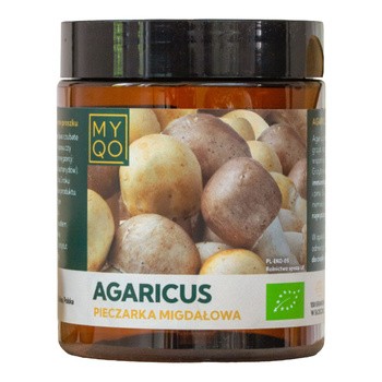 MYQO BIO Agaricus Pieczarka migdałowa - to suplement diety w postaci proszku, który zawiera Organiczny ekstrakt z owocników grzyba Agaricus blazei Murill. Produkt przeznaczony dla osób dorosłych.
