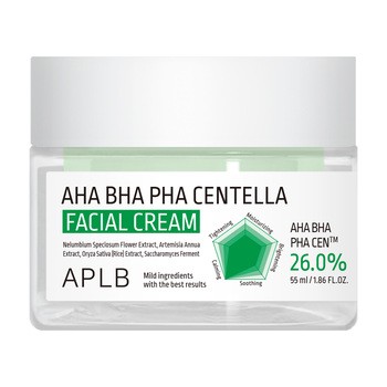 APLB AHA BHA PHA Centella Facial Cream, krem złuszczająco-kojący do twarzy z kwasami i wąkrotą azjatycką, 55 ml