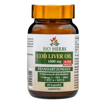 Bio Herbs Cod Liver Oil - to suplement diety w postaci kapsułek, który zawiera omega 3 oraz witaminy A i D. Produkt przeznaczony dla osób dorosłych.