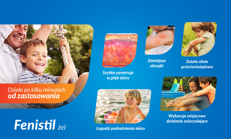 Lek Fenistil ma postać żelu do stosowania na skórę. Lek stosowany na skórę działa miejscowo przeciwuczuleniowo, silnie przeciwświądowo (z wyłączeniem świądu cholestatycznego), zmniejsza obrzęk, łagodzi podrażnienia.