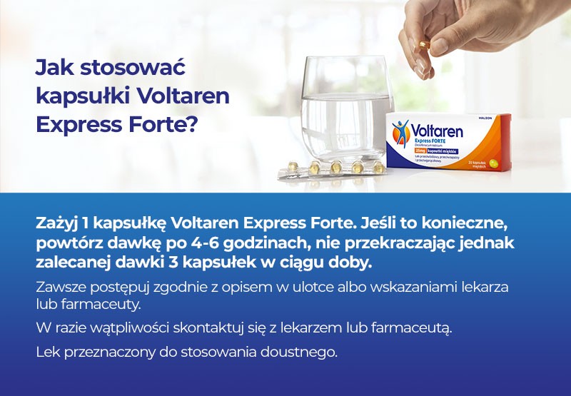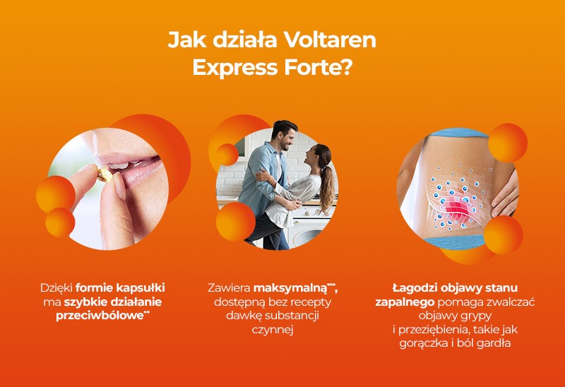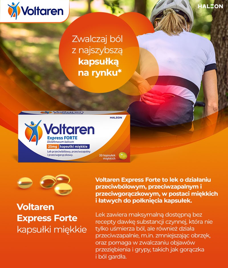 Voltaren Express Forte - produkt leczniczy działający przeciwbólowo i przeciwzapalnie.