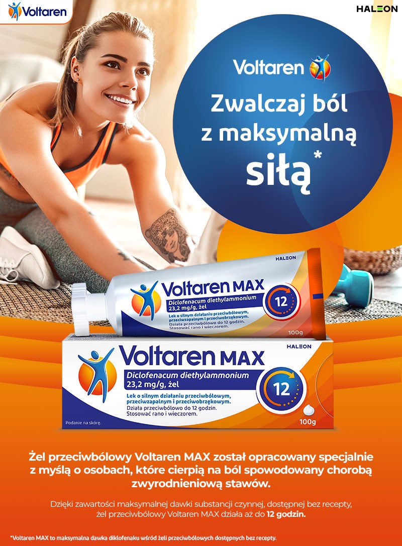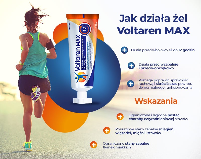 Voltaren MAX działa przeciwbólowo, przeciwzapalnie i przeciwobrzękowo.
