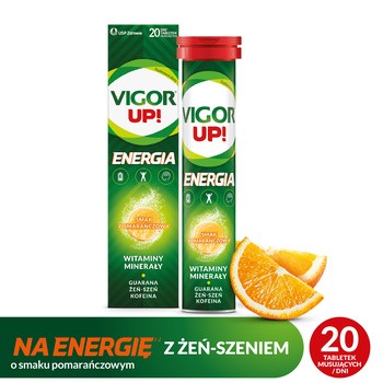 Vigor UP! Fast - suplement diety w postaci tabletek musujących o smaku pomarańczowym. To połączenie ekstraktów roślinnych, minerałów i witamin dodające energii każdego dnia i pomagające zmniejszyć uczucie zmęczenia.