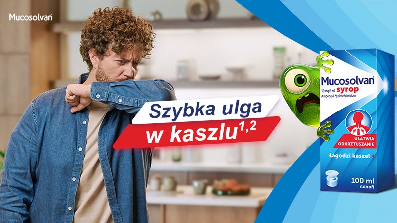 Kaszel to zawsze sygnał ostrzegawczy, że coś dzieje się w drogach oddechowych. Ale też - odruch, dzięki któremu je oczyszczamy. Jednocześnie to dolegliwość powodująca fizyczny i psychiczny dyskomfort, odcinający od codziennych aktywności. W przypadku kaszlu mokrego warto zadziałać tak, aby usunąć zalegającą wydzielinę z dróg oddechowych. W takich przypadkach zaleca się stosowanie preparatów o działaniu rozrzedzającym wydzielinę, takich jak syrop Mucosolvan, lek który dodatkowo chroni przed jej ponownym zaleganiem. Nie chowaj się, nie kaszel się schowa!