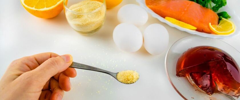 - Bardzo ważnym składnikiem do odbudowy stawów jest kolagen. Z żywnością można dostarczyć go do organizmu spożywając żelatynę (galarety, ryby w galarecie, galaretki z nóżek wieprzowych i cielęcych), chrząstki rekina, kurze łapki, golonkę (warto pamiętać, aby usunąć jak najwięcej tłuszczu).