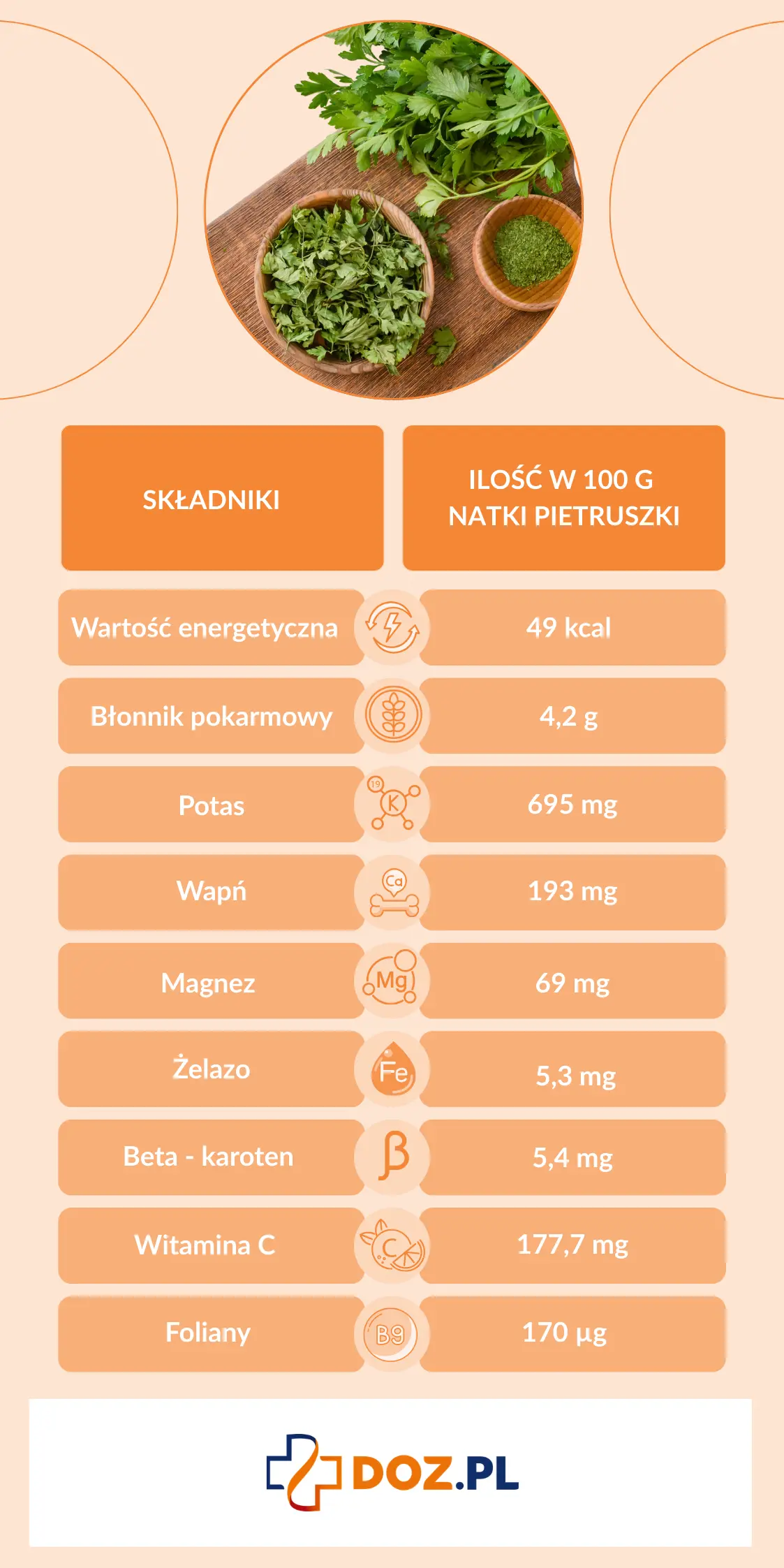 - Natka pietruszki – wartości odżywcze, kalorie, indeks glikemiczny