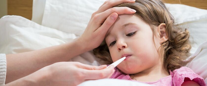 - (często) wysoką gorączkę, która u dzieci może przyjmować wartości przekraczające 39 stopni Celsjusza.
