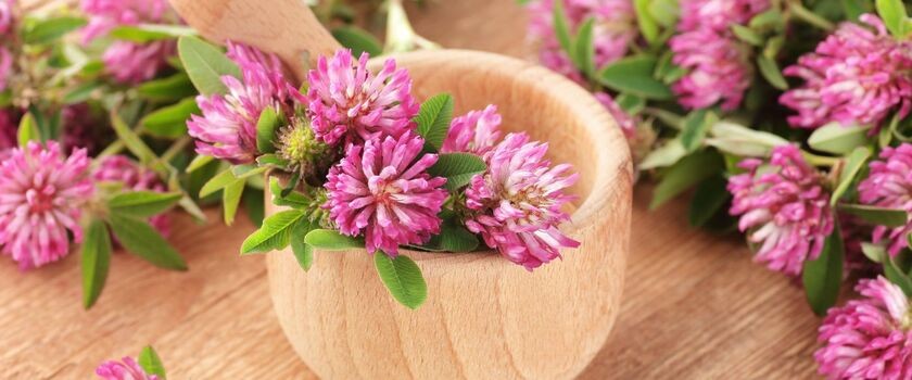 - Podczas menopauzy warto stosować ziołowe preparaty zawierające wyciągi z nasion soi lub koniczyny czerwonej, które są bogate w izoflawony. Podejrzewa się, że dieta bogata w soję przyczynia się do łagodnego przebiegu menopauzy u Azjatek, wśród których tylko 10–20% skarży się na uciążliwe objawy menopauzy. Zioła bogate w izoflawony sojowe pomagają łagodzić charakterystyczne dla klimakterium uderzenia gorąca i chwiejność emocjonalną. Korzystnie wpływają na poziom trójglicerydów i cholesterolu we krwi, a także na gęstość tkanki kostnej, dzięki czemu pomagają zapobiegać osteoporozie. Koniczyna często występuje w preparatach z dodatkiem bogatego w kumestany wyciągu z szyszek chmielu, co pomaga łagodzić niepokój i drażliwość w okresie menopauzy.